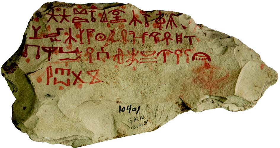 | Preservation | The fragment is incomplete and broken off at least at the bottom where the lower parts of two marks are missing. The paint has faded in some places, making especially the marks in the upper part of the fragment diffi cult to read. |